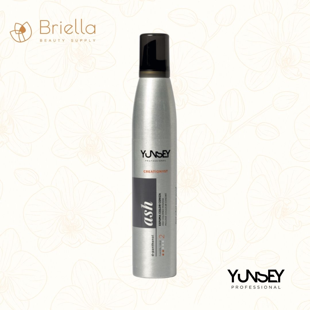 Espuma color ceniza que aporta cuerpo, volumen y una fijación ligera, ayudando a neutralizar reflejos amarillos, controlar el frizz y proteger el cabello de los rayos UV. Su textura ligera permite un acabado flexible y natural.
